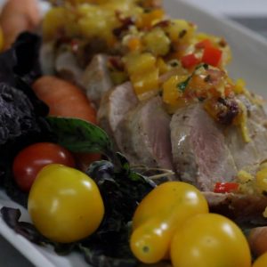 - Slice the rested pork and spoon the delicious local sauce over tenderloin.